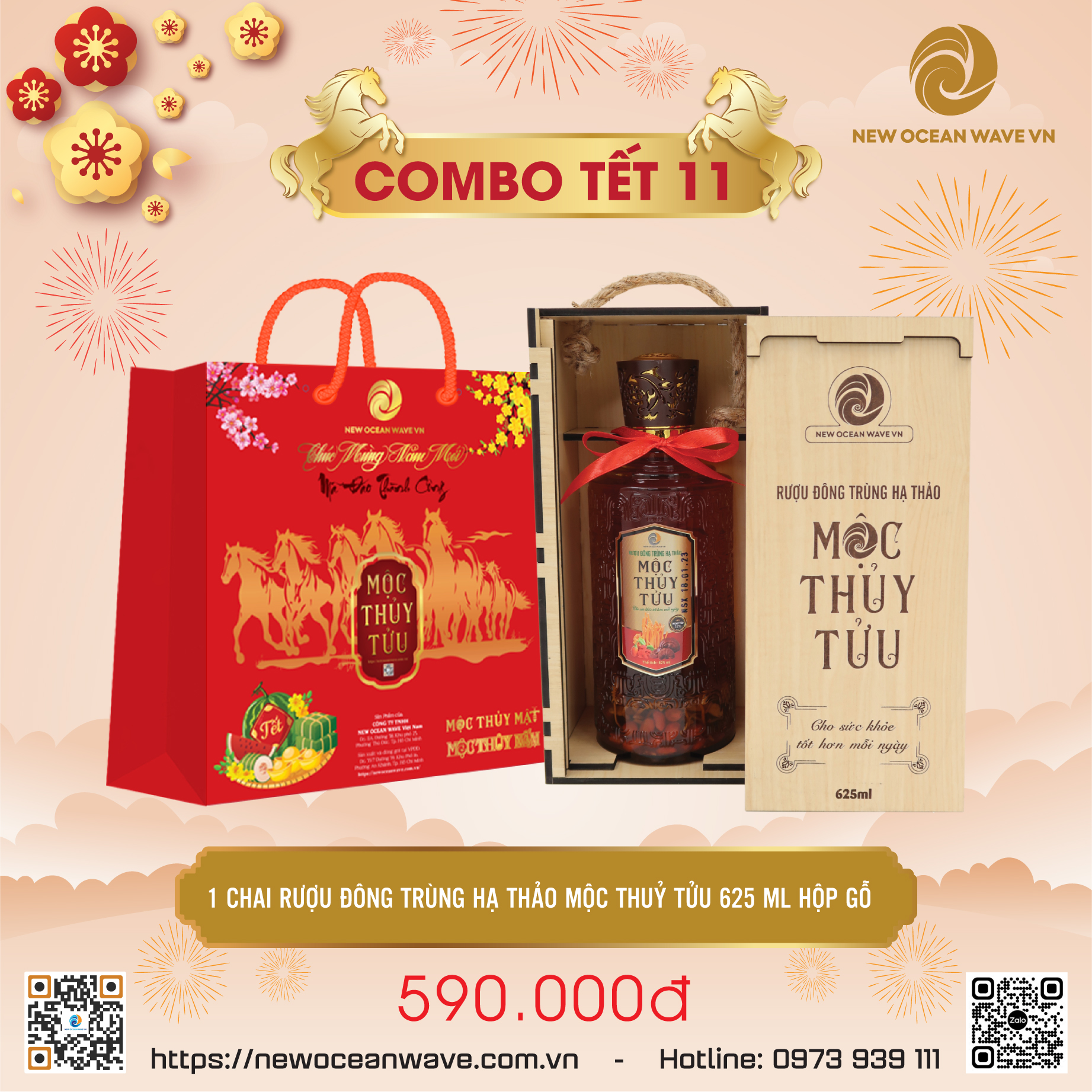 Rượu Đông Trùng Hạ Thảo MỘC THỦY TỬU 625 ML HỘP GỖ ĐƠN