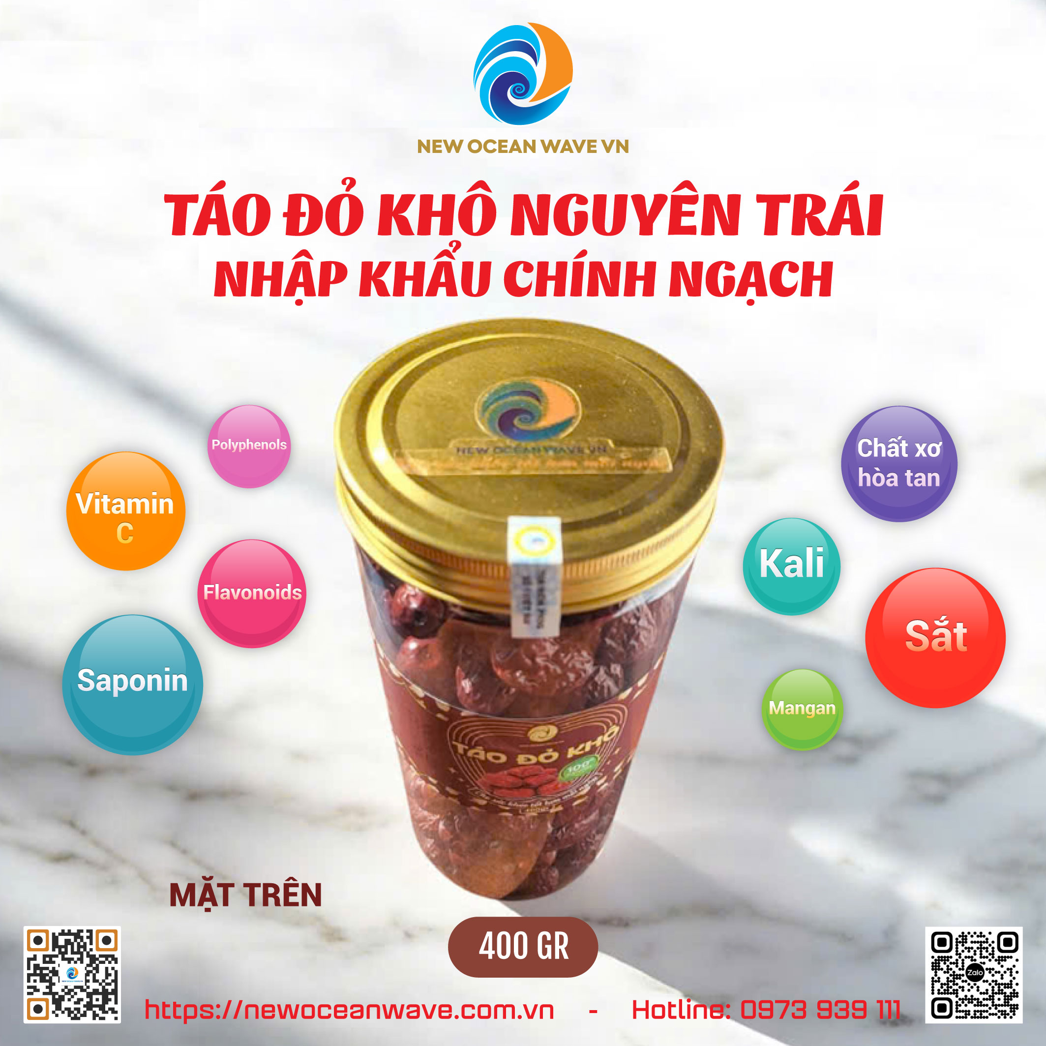 400 gr táo đỏ khô nguyên trái NHẬP KHẨU CHÍNH NGẠCH, có Chứng nhận xuất sứ, có Chứng nhận Chất lượng